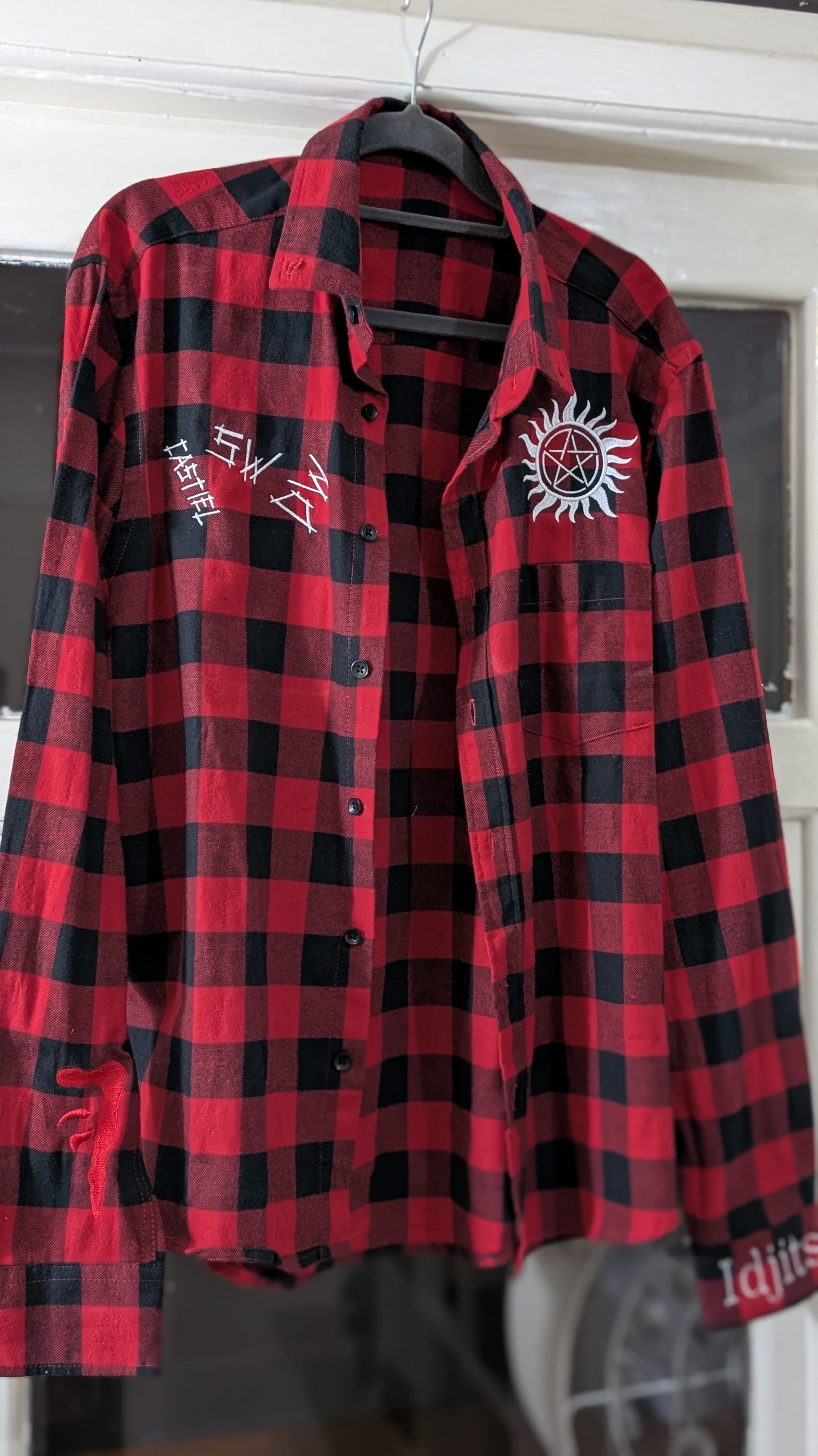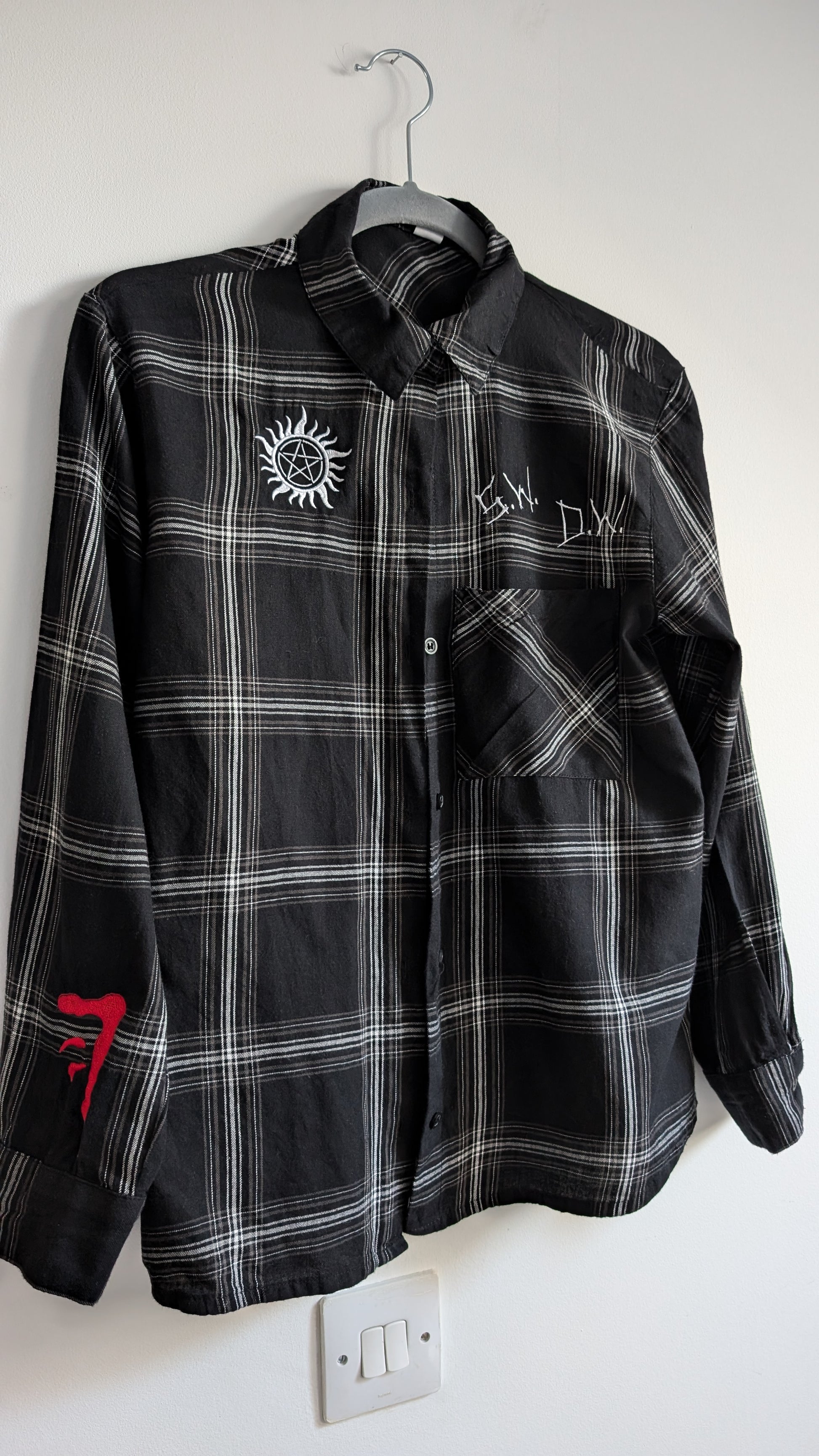 Our iconic flannel shirts pay special tribute to the world of hunters, angels, and things best left in the dark. Each one is embroidered with symbols instantly recognisable to fans - from anti-possession wards and devil’s traps to angel-banishing sigils and marks of protection. So subtle to outsiders, but powerful to those who know.