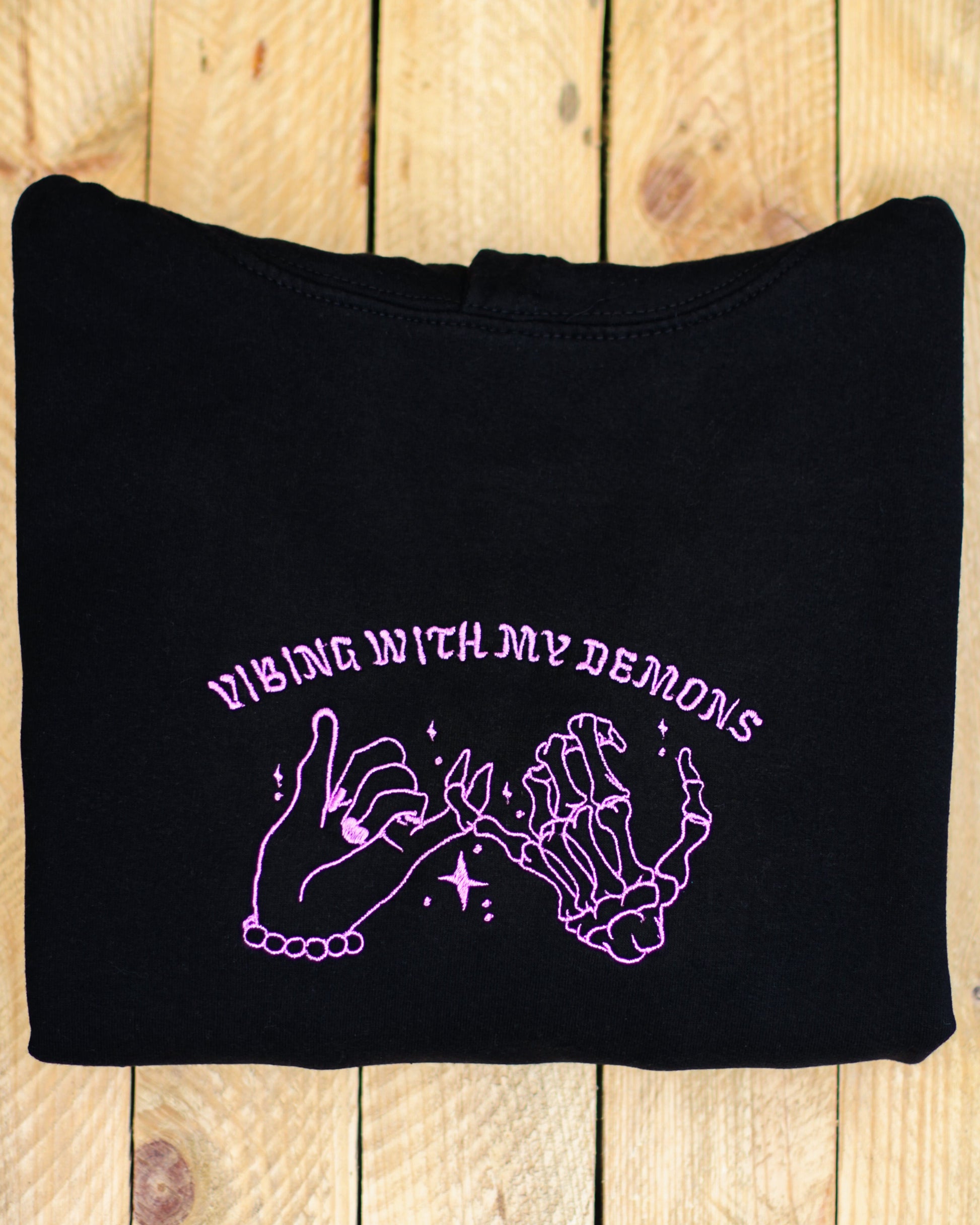 Part of our Spooky Season collection, this colourful design is where attitude meets the afterlife - a witchy hand and skeleton pinkie promise to always keep it spooky.
